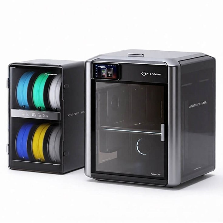 AtomForm Palette 300 — это профессиональный 3D-принтер для многоматериальной печати, который позволяет использовать до 36 цветов или 12 различных материалов в рамках одной модели благодаря системе автоматической смены сопел OmniElement™.