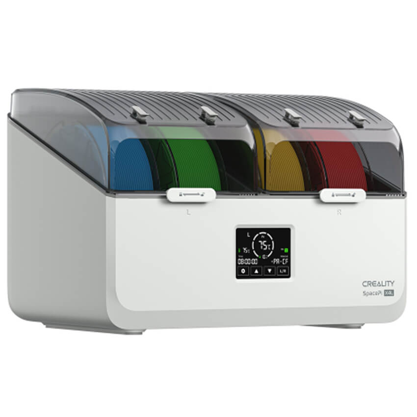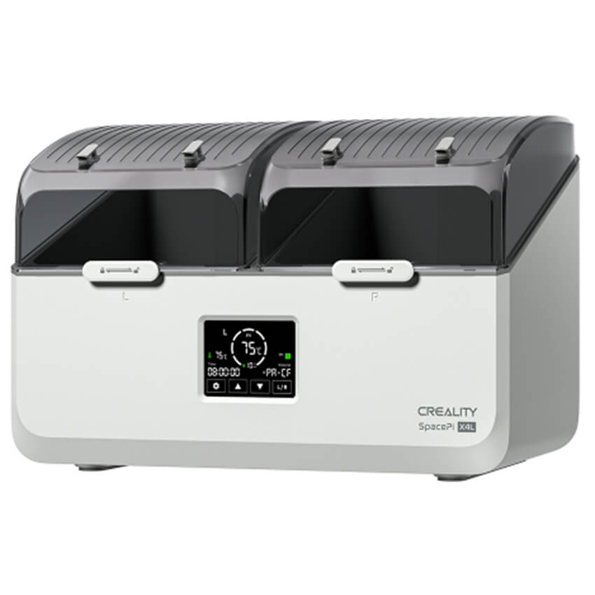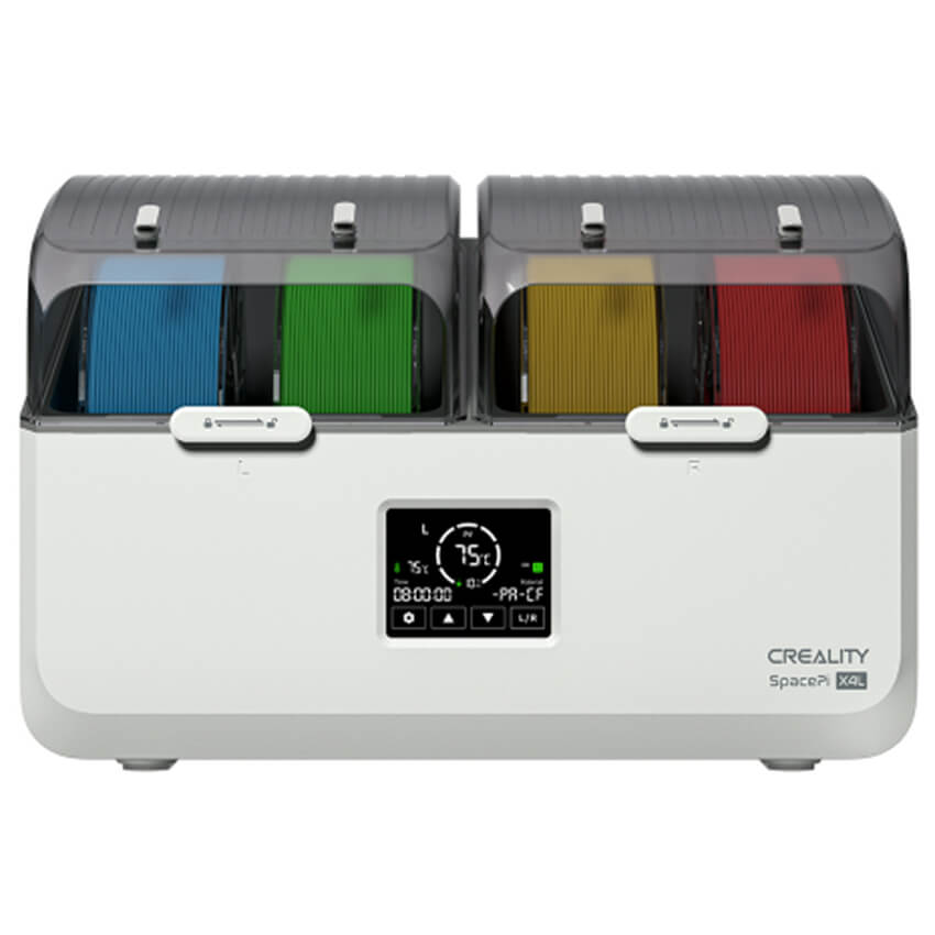 Creality SpacePi X4L — это профессиональное устройство для сушки филамента, позволяющее одновременно сушить до четырёх катушек в двух независимых камерах с индивидуальным PTC-нагревом.
