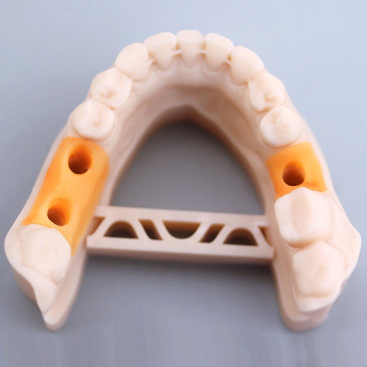 Используемая в основном для производства десневых масок, фотополимерная смола Gorky Liquid Dental Gingiva представляет собой материал розового цвета, который позволяет печатать модели (или их части), требующие определенной степени гибкости. Эта особенность оказывается очень полезной при работе с моделями имплантатов или других изделий, где необходима гибкость.