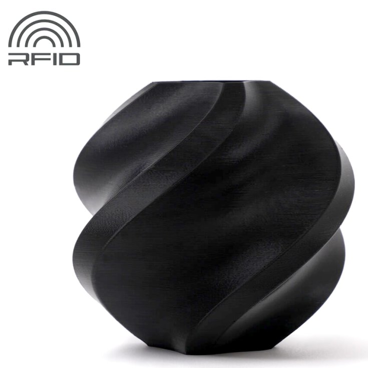 Пластик PLA Basic от Bambu Lab черного цвета предназначен для 3D-печати на высоких скоростях. Изделия из него получаются гладкими и безупречными, высокое качество которых не оставляет сомнений. На пластике отмечены метки RFID, который успешно считываются автоматической системой подачи материала (AMS) Bambu Lab.